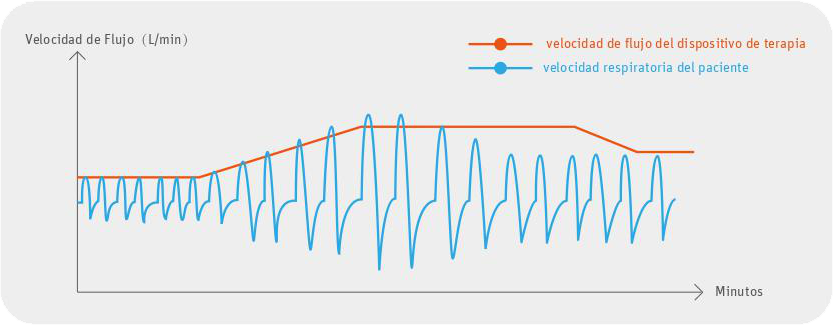 Establece los parámetros de salida flujo automáticamente, depende de la función del flujo espiratorio máximo (PEF) del paciente, simplifica los pasos de configuración, satisface el efecto del tratamiento y mejora la comodidad del paciente.