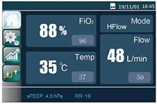 Monitoreo en tiempo real de la concentración de oxígeno, flujo, temperatura, frecuencia respiratoria, sPEEP.