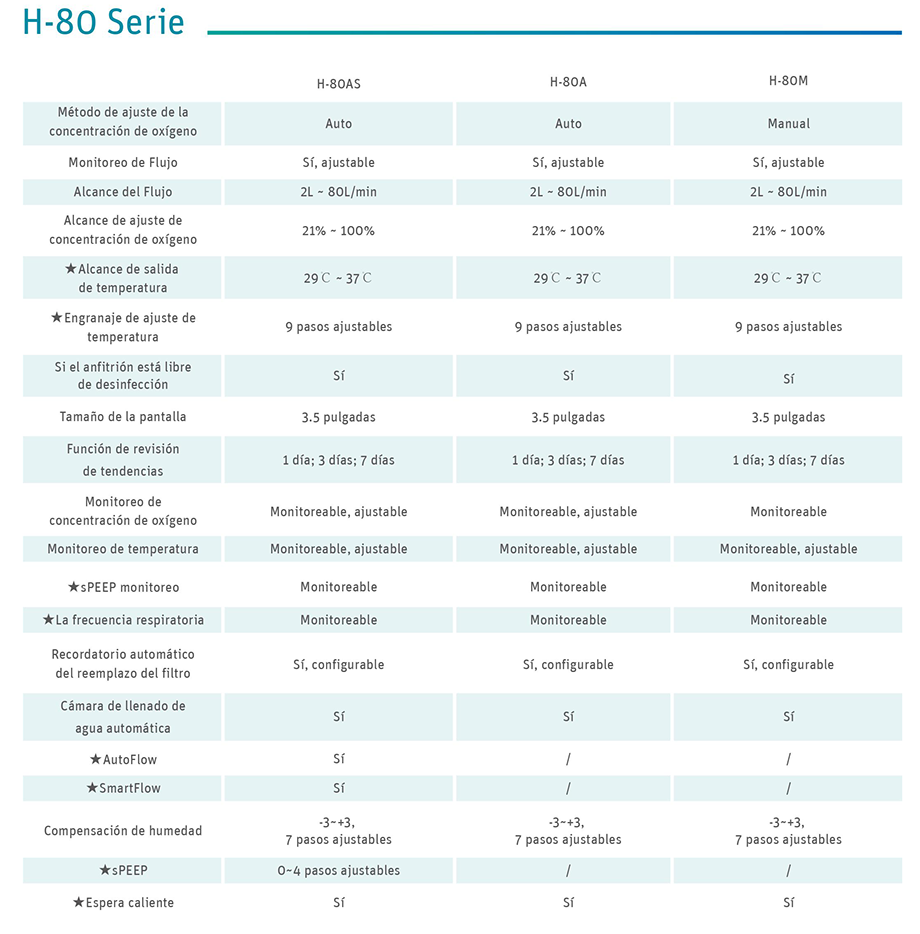 El nuevo módulo H-80 con su diseño libre de desinfección, mantiene un caudal de oxigeno-aire estable de hasta 80L/min. Y cuenta con la patente exclusiva AutoFlow y SmartFlow para cumplir con el efecto terapéutico mientras mejora la comodidad del paciente.
